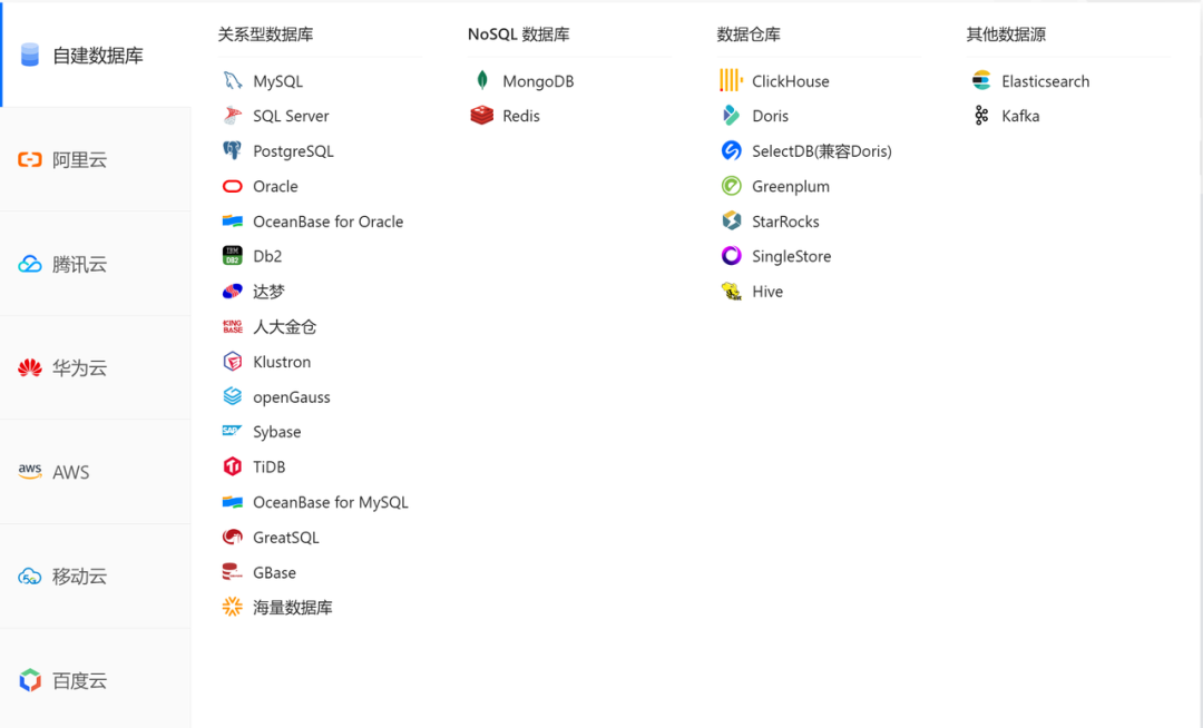 系统内置了丰富的数据源支持,包括了常用的数据库及主流的云厂商。比较有趣的免费信息发布网时,针对创建的数据源,还可标识其角色(生产、开发),有助于后面做针对性管理。