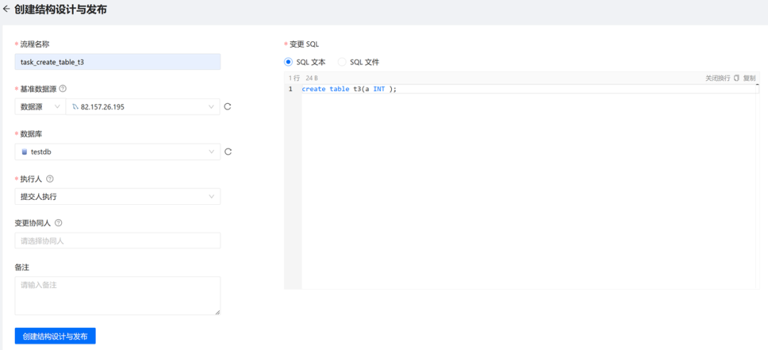 为保证规范性,普通用户结构变更可通过任务发布的方式来完成。提交自己的结构变更需求
