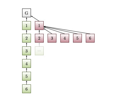 为了发动雪崩攻击,攻击者需要控制几个连续的区块提议者。在每个区块提议slot中,攻击者保留他们的区块,并收集它们,直到诚实链与保留的区块达到相等的子树权重。然后,释放被保留的区块,使它们最大限度地模糊。这意味着,例如,对于6个保留区块,第一个诚实区块n与对手区块n竞争创建一个分叉,然后所有剩下的5个对手区块都在n+1处与诚实区块竞争。这意味着建立在对手区块n和n+1上的分叉现在吸引了诚实的验证,因为区块在真正诚实的链的重量等于对抗链的重量的时刻被释放。现在可以对尚未构建在其之上的保留区块重复这一操作,允许攻击者阻止诚实的验证者跟随诚实的链头,直到它们的模糊区块被用完。如果攻击者在攻击进行时有更多的机会提出区块,他们可以使用它们来扩展攻击,这样,越多的验证者参与攻击,它可以持续的时间越长,并且可以将更多诚实的区块从规范链中移出。