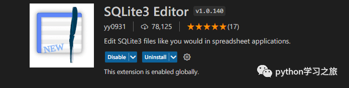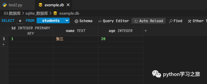 复制import sqlite3 # 连接到数据库 conn = sqlite3.connect(user.db) # 创建一个游标对象 cursor = conn.cursor() # 创建表格 # 创建一个名为students的表,包含id、name和age三个字段 cursor.execute(CREATE TABLE students (id INTEGER PRIMARY KEY, name TEXT, age INTEGER)) # cursor.execute(CREATE TABLE stocks # (date text, trans text, symbol text, qty real, price real)) # 插入数据 # 向students表中插入一条数据 cursor.execute("INSERT INTO students (name, age) VALUES (张三, 20)") # cursor.execute("INSERT INTO stocks VALUES (2022-10-28, BUY, GOOG, 100, 490.1)") # 保存更改 conn.commit() # 关闭连接 conn.close()1.2.3.4.5.6.7.8.9.10.11.12.13.14.15.16.17.18.19.20.21.22.23.24.在上述例子中,我们新建了一张表,并且插入了一条数据,但是我们一般是打不开这个文件的,需要借助插件来查看数据文件;这个时候需要安装一个插件: