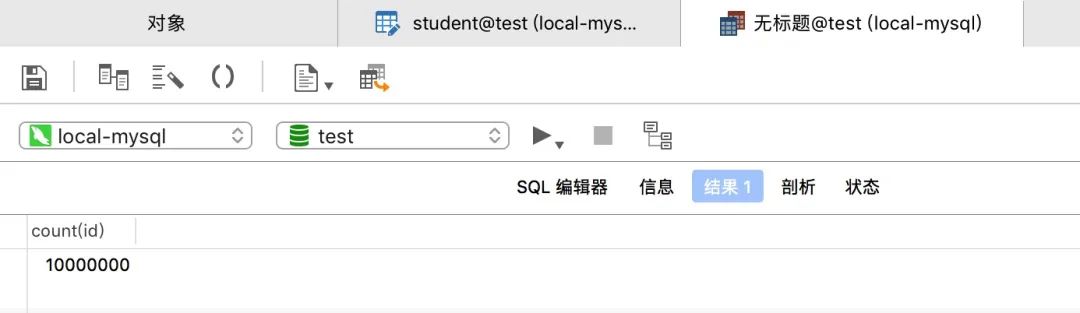 为了贴近海量数据这一特性,真实小编特意在学生表student中造了1千万条数据,表现本来是大数到底想造 1个亿的,但是据环境下造数据实在太耗时了,挑战比较大,查询当一张表的数据量到达1千万时,查询性能查询已经很明显了,所以造 1 个亿的梦想暂且搁置!