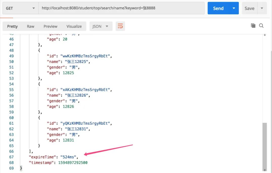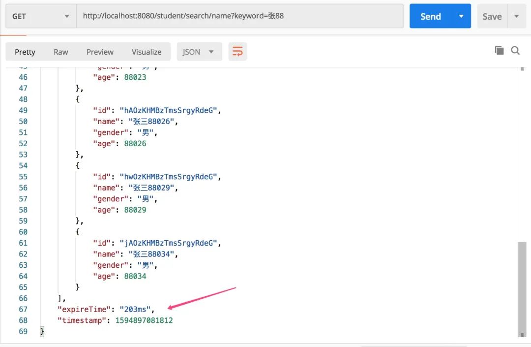 从数据结果上看,耗时基本在0.5s之内,可以说吊打从数据库直接查询数据的耗时!