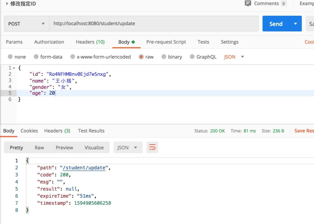 修改时,只需要传入ID即可,Elasticsearch 会根据ID作为索引,判断是否存在,如果存在,就进行更新,如果不存在,就将其插入!