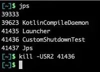 // custom signal kill Signal sg = new Signal("USR2"); // kill -12 pid Signal.handle(sg, new SignalHandler() {