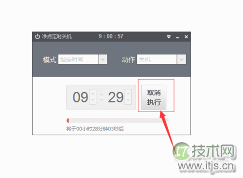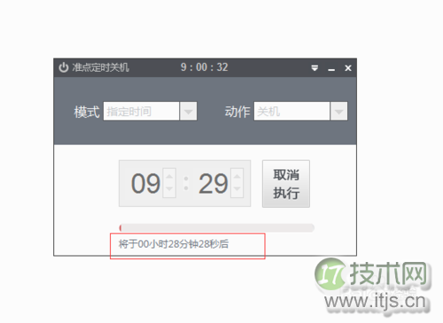 5、点击“开始执行”,服务器租用下列就会显示“定时关机时间”