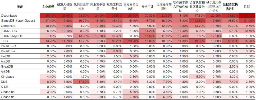 数据库选型评估是从组个难点,很多用户都面临这一问题。个人之前在某头部银行工作,也曾参与到技术选型工作。对于一些有技术实力及有资源的公司,可以采取自测的方式。可参考我之前的文章《分布式数据库选型评测指南》。这种方式可以充分参考本公司的服务器托管情况,做到有的放矢。但对于绝大部分用户来说,没有这样的资源来做,只能采取一些折中的方法。社区调查提出的表格,就给用户选型提出了一些新的选型评估维度。