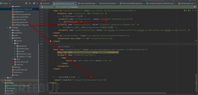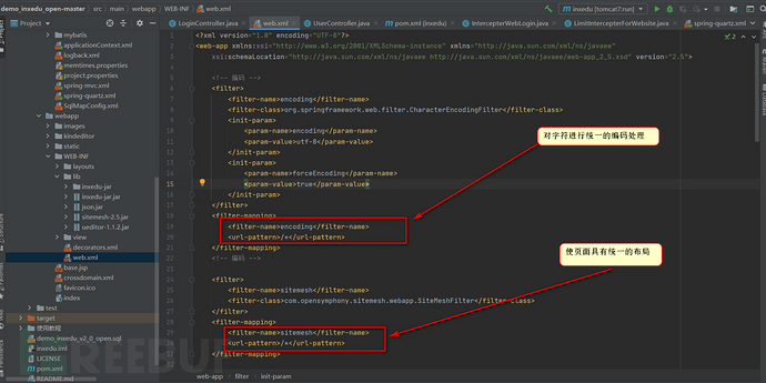 直接找到源代码进行分析,源码在\src\main\webapp\WEB-INF\lib\inxedu-jar.jar包中。
