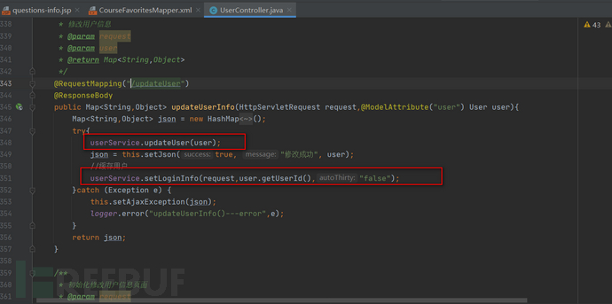 分析代码可知,未对用户进行判断就直接把用户信息更新到数据库中,更新数据库中后直接使用userid进行自动重新登录从而可导致直接登录其他用户界面。