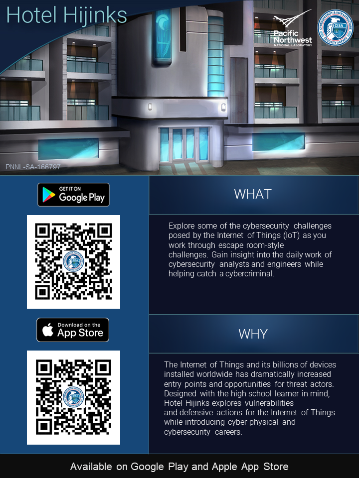 物联网酒店装载了各种智能设备,从自动浇水植物到机器人服务员和智能电梯。这些设备旨在提高客户的舒适度和安全性,但它们是否也让网络犯罪分子的生活变得更轻松?玩家可以在收集线索并对智能设备进行分类,以终结网络攻击并捕获黑客的过程中,了解物联网(IoT)带来的真实网络安全挑战。