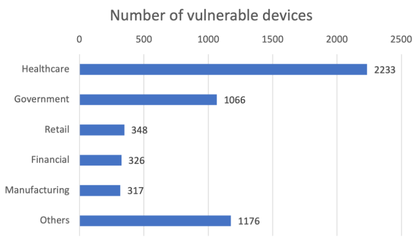 研究人员通过Shodan查询数据发现了运行Nucleus FTP和RTOS的设备超过2200个。