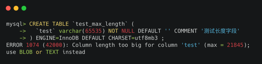 在mysql建表sql里,的段最大长度我们经常会有定义字符串类型的的段最大长度需求。