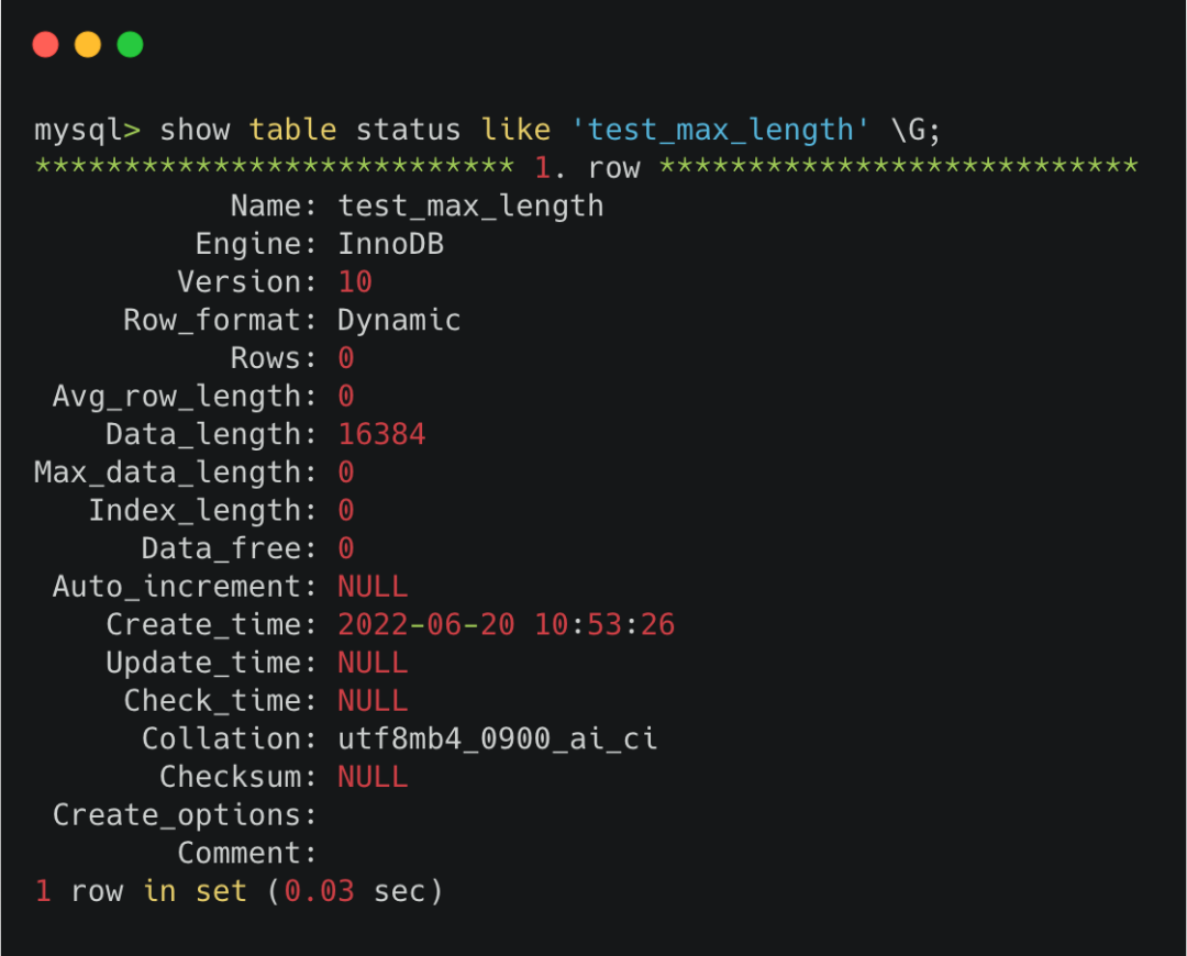 通过上面的 Row_format 字段可以看到这个表用的是 Dynamic 行格式。