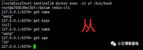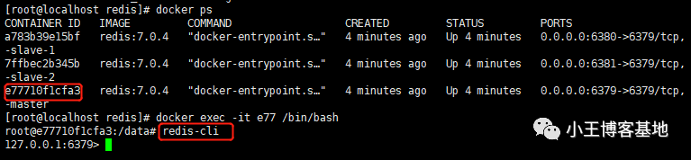 复制docker restart e771.我们发现刚刚新加入的6379会以从节点加入到主节点中!