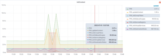 默认情况下,单个 istiod 的推送并发数只有 100,在较大的集群内,可能会导致配置生效的延迟。istiod 环境变量 PILOT_PUSH_THROTTLE 可以配置这个并发数。建议根据集群规模进行配置。