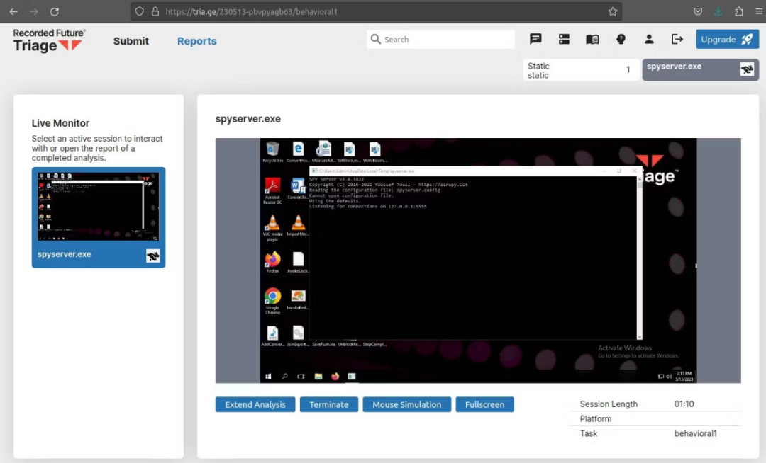 Recorded Future Triage的最大特点是其完全交互式的沙箱应用环境。这项功能允许用户与被测试的文件或应用程序进行实时化的交互,从而让用户可以更深入地了解其运行特征和异常行为。