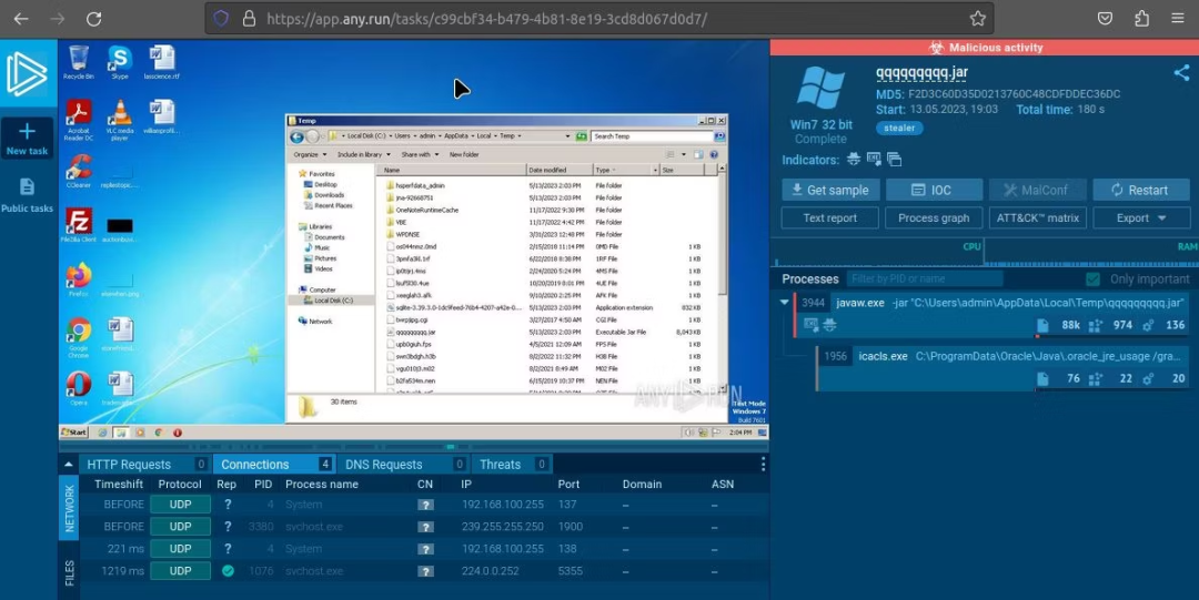 AnyRun平台的一项突出特性就是可以对恶意软件进行实时化的详细分析。一旦分析工作开始,AnyRun就可以提供完整的检测过程回放,让用户可以实时观察应用程序的行为,深入了解其潜在威胁。