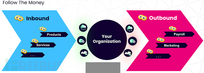 企业如何创收(资金流入),例如:销售产品、服务等。企业如何花钱(资金流出),例如:运营成本、市场营销等方面的支出。“跟随资金流向”可以很好地帮助企业初步发现业务流程及其相关的底层技术。