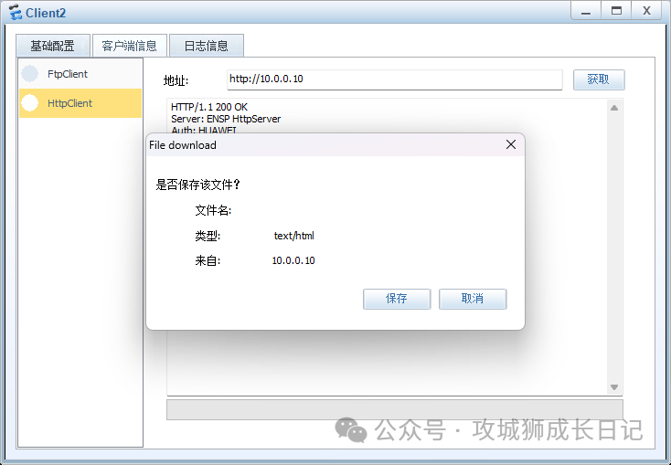 复制ip service-set SERVICE type object 16 service 0 protocol icmp service 1 protocol tcp destination-port 80 service 2 protocol tcp destination-port 211.2.3.4.再测试FTP服务,如下图,还是有问题