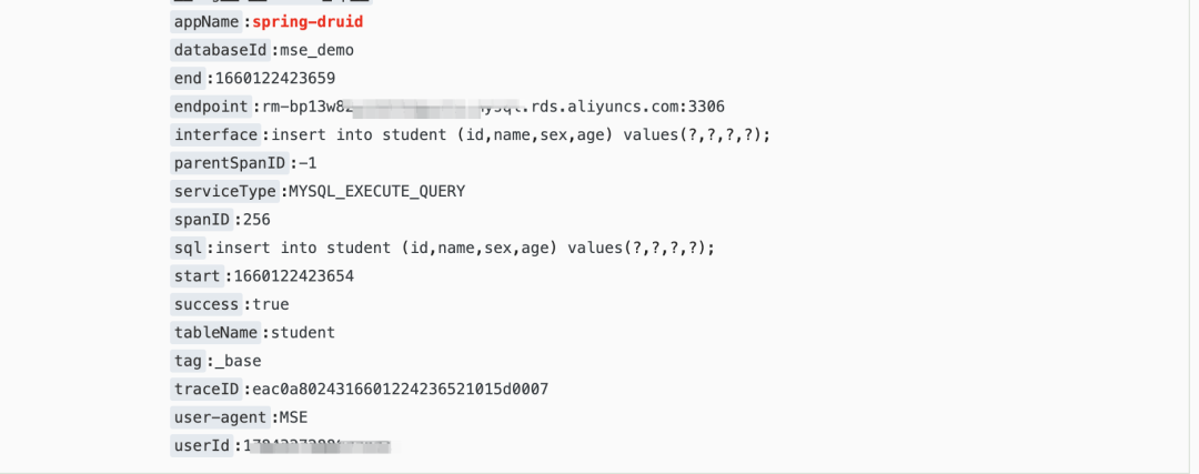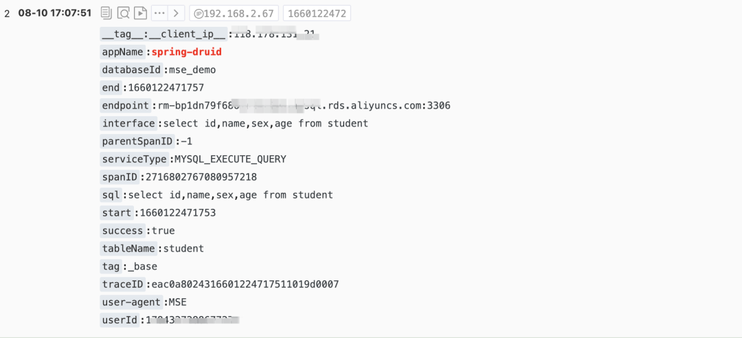 (4)白屏化能力:通过 AccessLog 实时感知读写分离情况有读写分离能力,那么我们如何知道读写分离的执行情况,到底哪些应用,哪些请求被分离至了只读实例?MSE 白屏化能力提供了一套完整的 AccessLog。