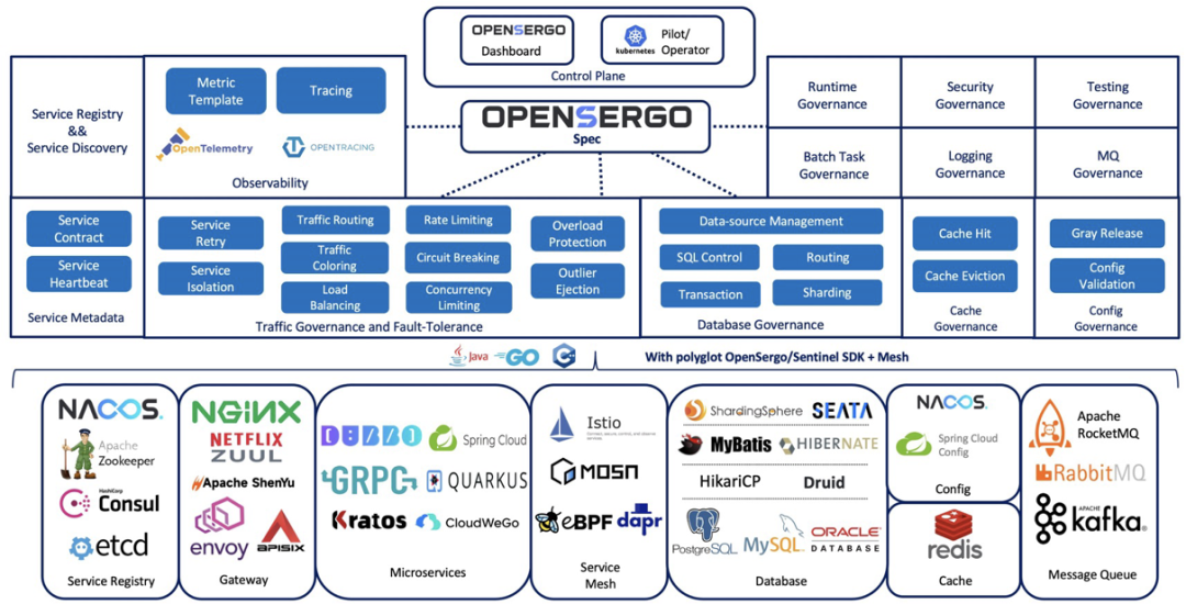 在建设数据库治理能力的同时,我们也通过 OpenSergo 在与社区共同建设数据库治理的标准。