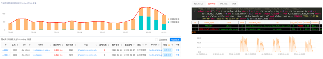SQL事后治理研发可以基于 DMS 系统获取到对应的慢查询趋势跟详情信息,方便研发进行日常优化治理。当然也需要一些系统外的机制保障研发是在不断治理的,整个 SQL 防控、兜底、治理就算闭环了。