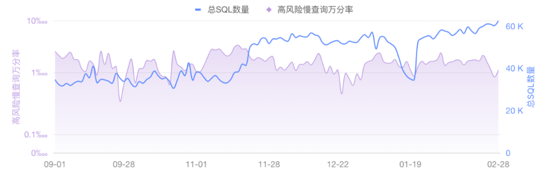 可以看到高危慢查询万分率常态化下都在万分之一附近波动。