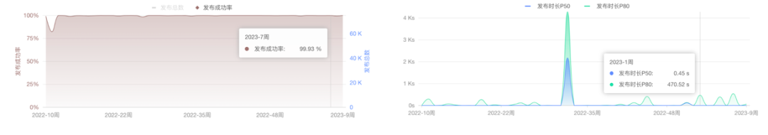 可以看到我们发布成功率还是非常高的,同时发布时长整体也都在10分钟左右就可以结束。