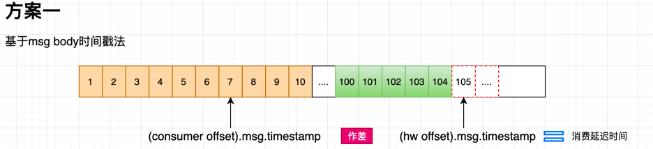 该方式比较简单由于要消费消息取时间戳因此效率非常低,但是比较准确。