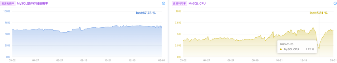自建环境下是很难将平均存储使用率做到这么高的,在2023H1结束前我们预计存储平均使用率能做到75%以上。CPU平均使用率15%左右,做到这一点是非常困难的,要兼顾成本跟容量安全,这块我们前面在稳定性介绍里提到了我们是具备比较强的应急处理能力的,确保我们具备探索更多的可能。