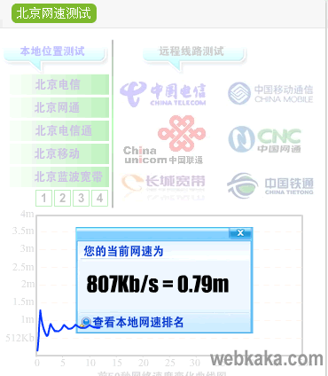 卡卡网速测试平台是国内权威的测速网站,网站有多种线路可供选择,用户根据网络使用情况选择测试线路,测试点遍及全国各省、美国、澳大利亚、日本等海外国家,用户可选择任意测试点进行测试,网站采用flash实现测速功能,可视化的测试过程,测试结果能准确反映本地网络速率,无需下载安装插件或添加额外设备,使用简单,操作方便。