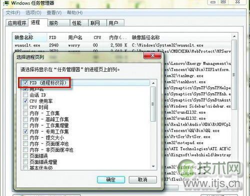 首先还是打开任务管理器,切换到“进程”标签,点击“查看”-“选择列”,勾寻PID(用户进程符)”,然后再切换到“应用程序”,这可以看到和不同好友聊天的任务,选择一个聊天任务,点击右键,选择“转到进程”,然后就可以在“进程”标签中看到QQ所属的PID用户进程符,不同的QQ号码这个进程符是不一样的。记住这个进程符之后,再进行上面第二步的操作,注意区分不同进程符对应的QQ号码即可。