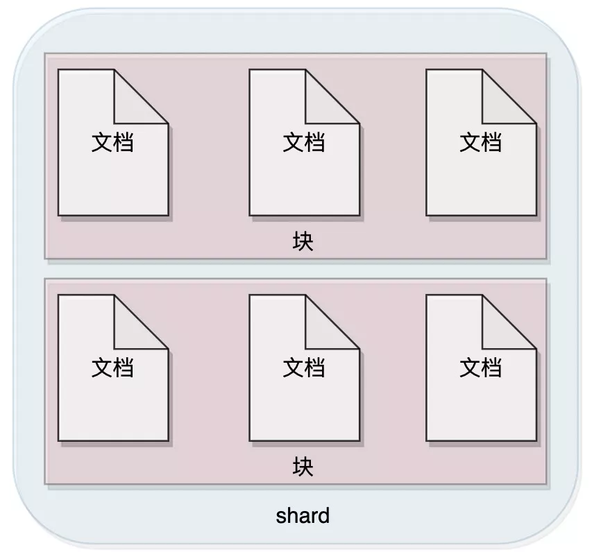 一个集群包含了多个分片组成,而一个分片又存储了多个块(每个块包含一定范围片键的数据,互不相交且并集为全部数据),一个块当中包含了多个文档。
